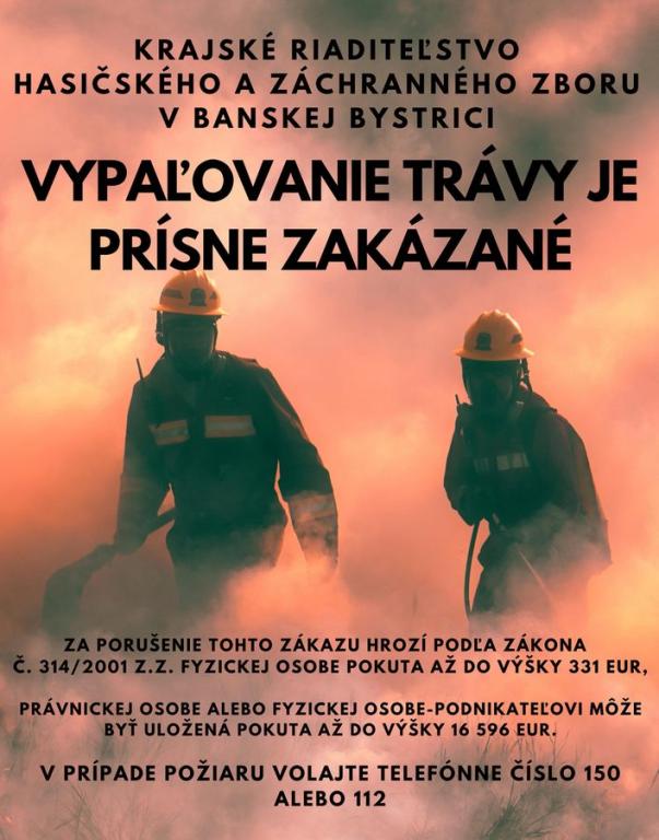 Okresné riaditeľstvo Hasičského a záchranného zboru v Banskej Bystrici Vám vzhľadom na zvýšený počet výjazdov súvisiacich s likvidáciou požiarov trávnatých porastov dáva do pozornosti nasledovné: